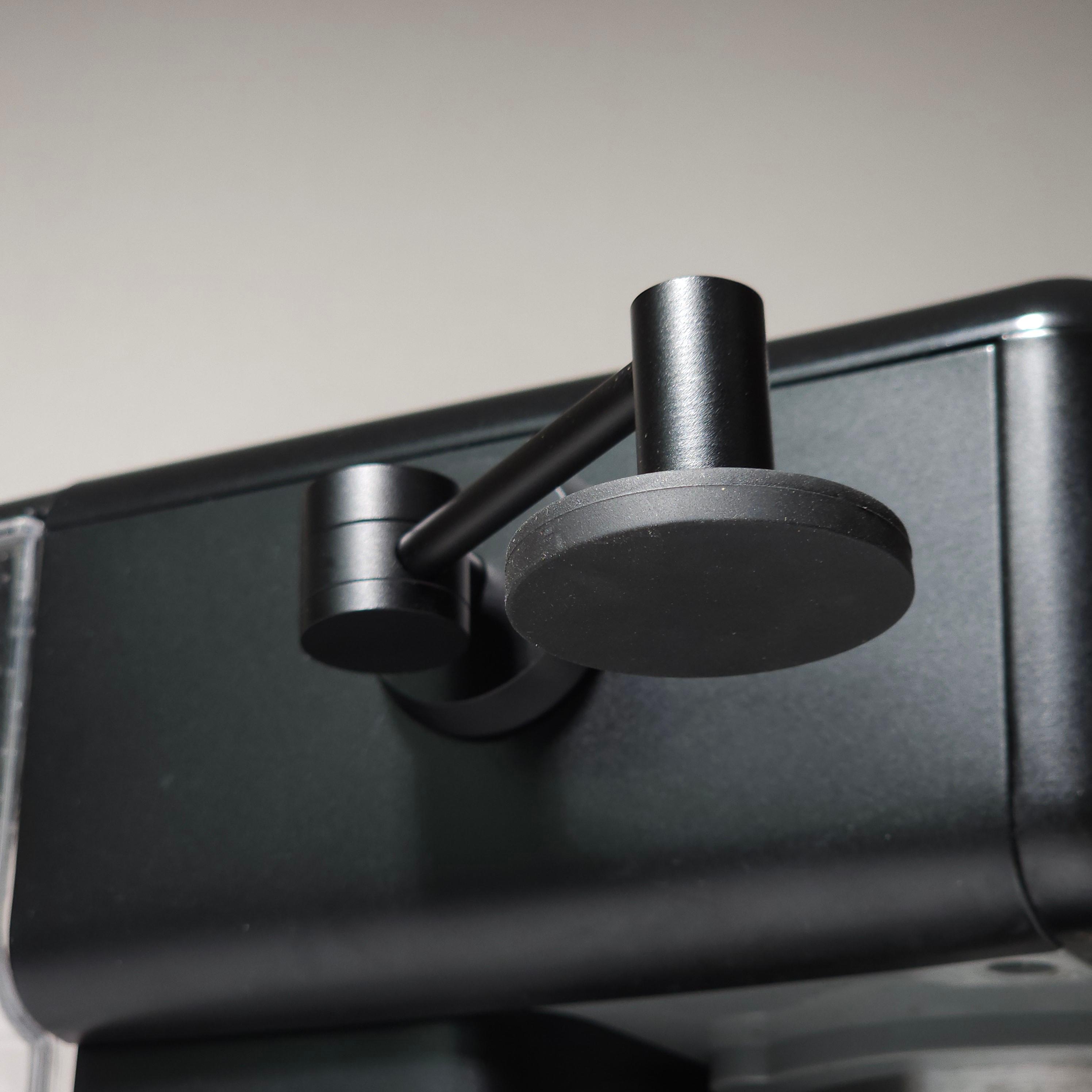 사용하지 않을 때에는 접어둘 수 있는 구조로 설계되어, 작업 중 손이나 포터필터에 걸리는 불편함을 최소화하였습니다. 벽면, 커피머신 측면, 작업대 등 다양한 위치에 맞추어 최적의 사용 각도를 설정할 수 있습니다.