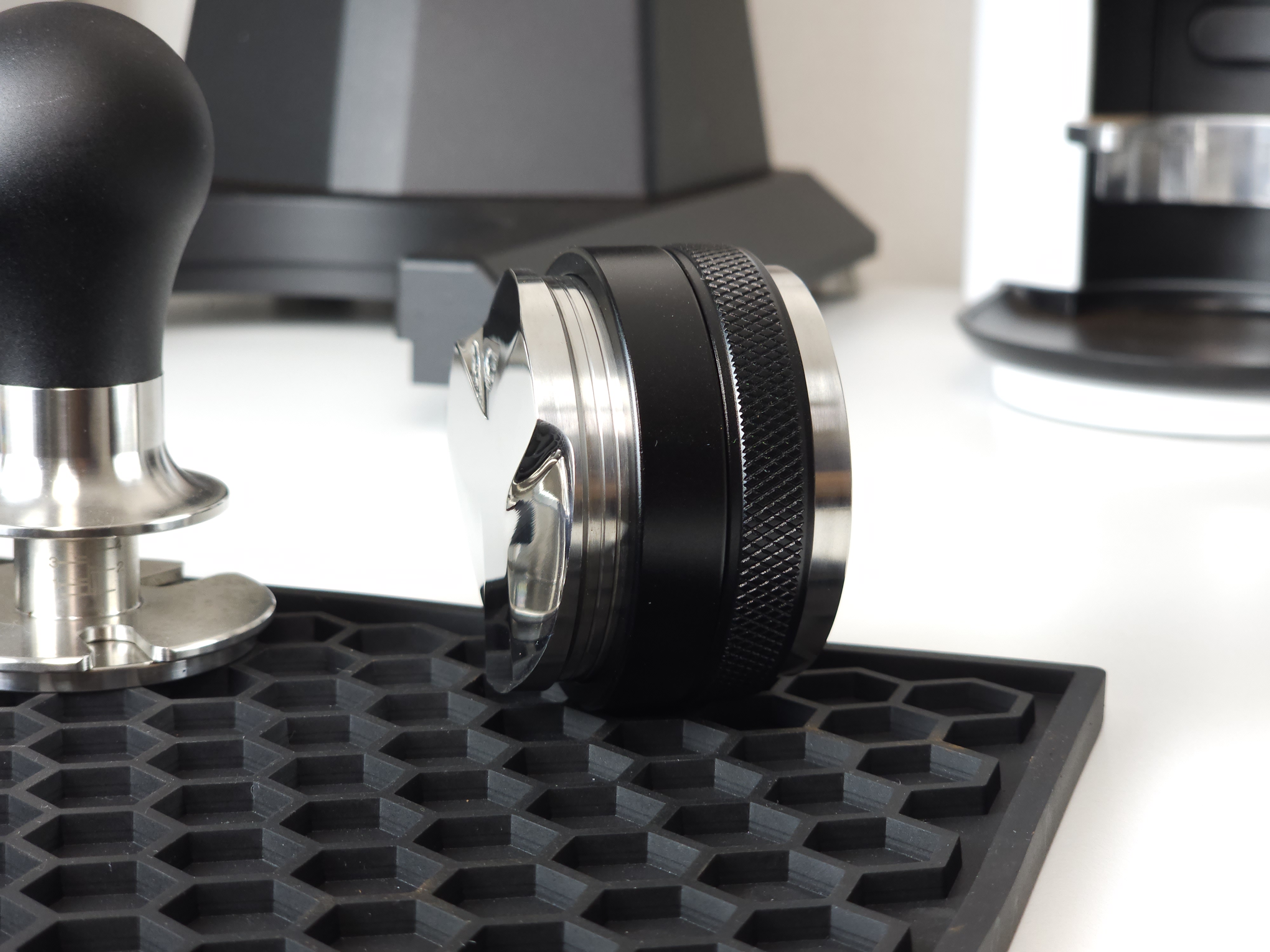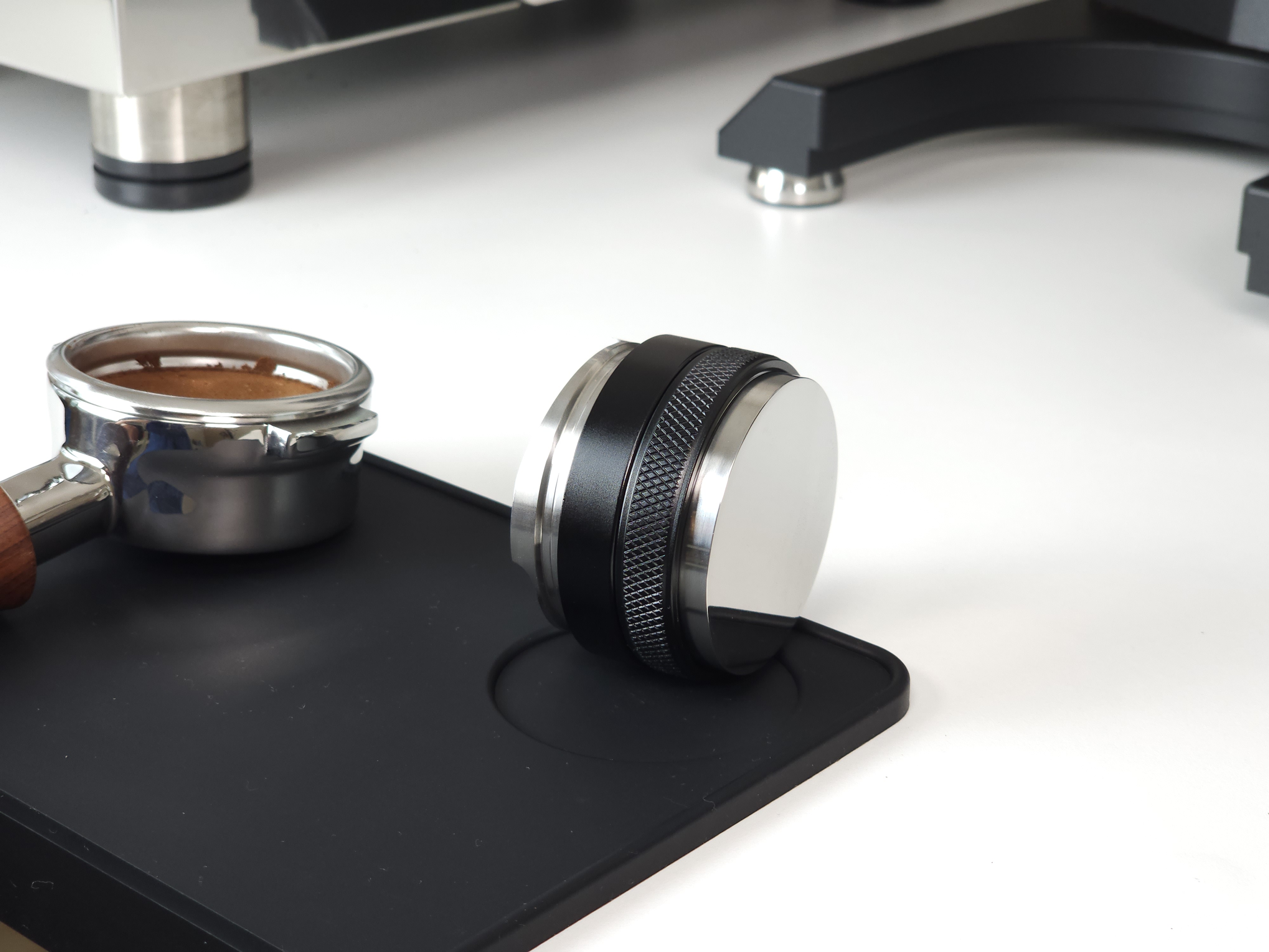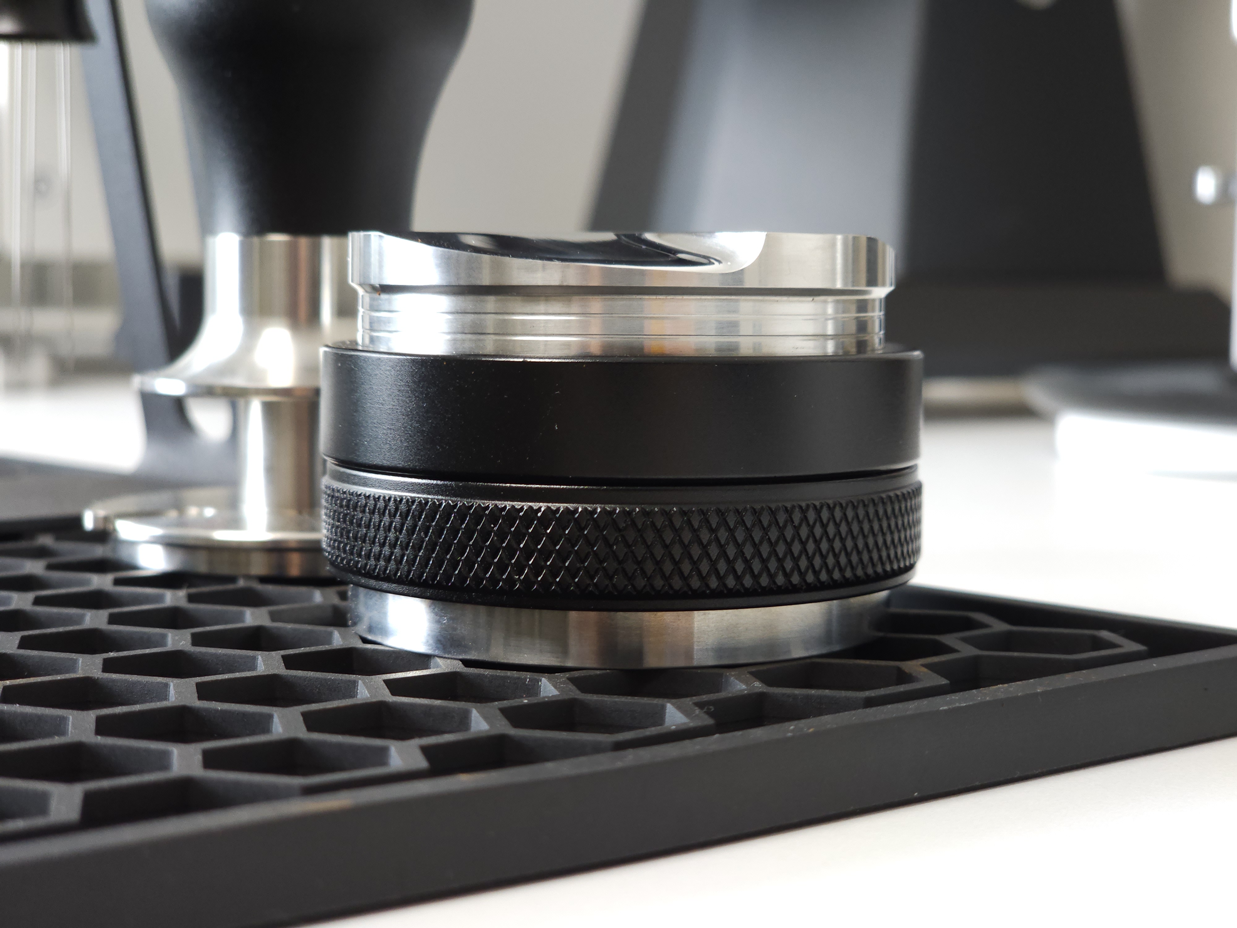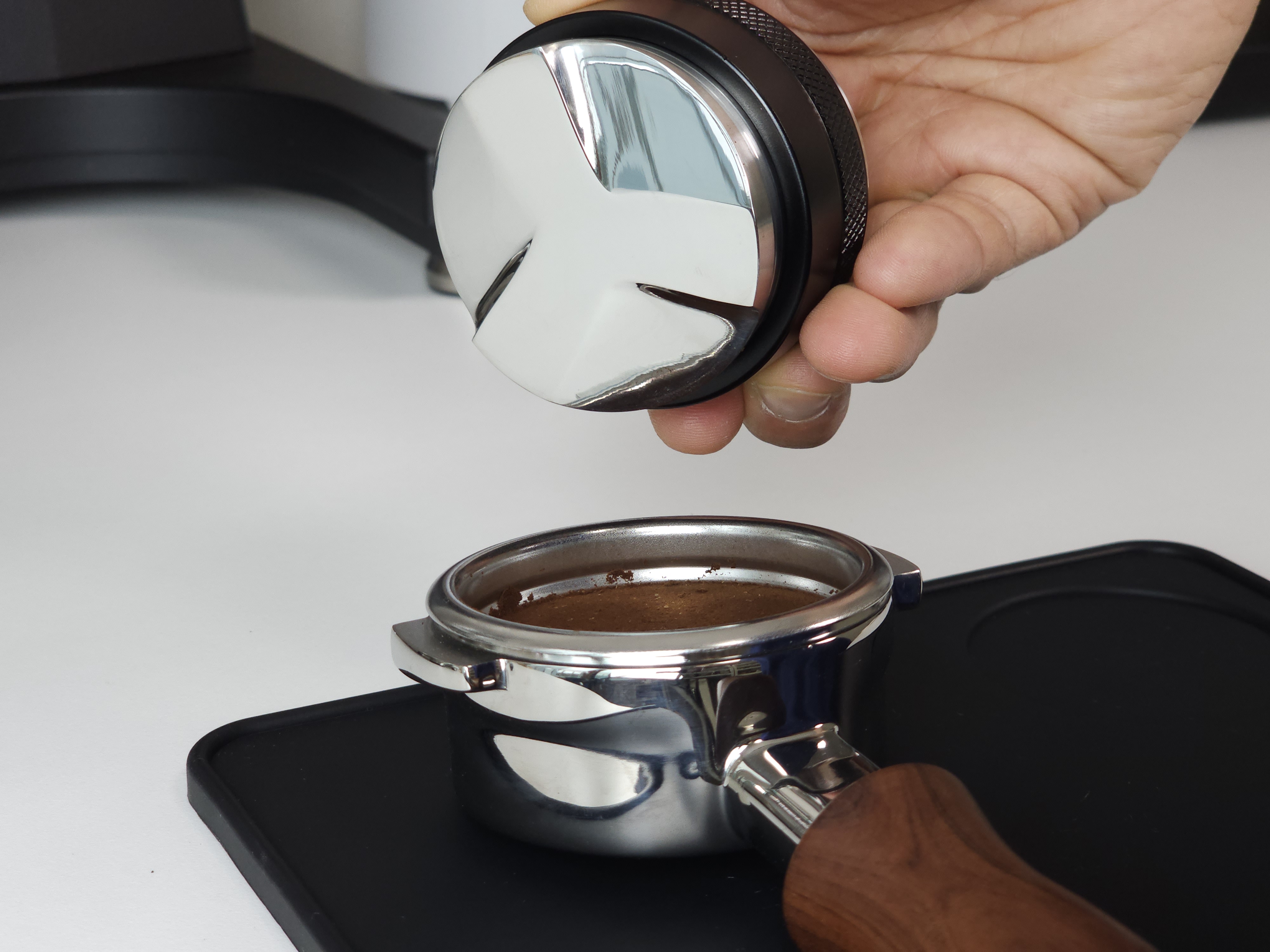 탬퍼 타입의 경우 Flat 베이스로 제작되어 일자로 탬핑이 가능합니다. 레벨링툴 더블의 검은색 테두리가 바스켓 엣지부분에 닿게 되어 항상 수평적인 탬핑이 가능합니다. 단, 템퍼 파츠의 길이를 조금 길게 빼셔야 합니다:)