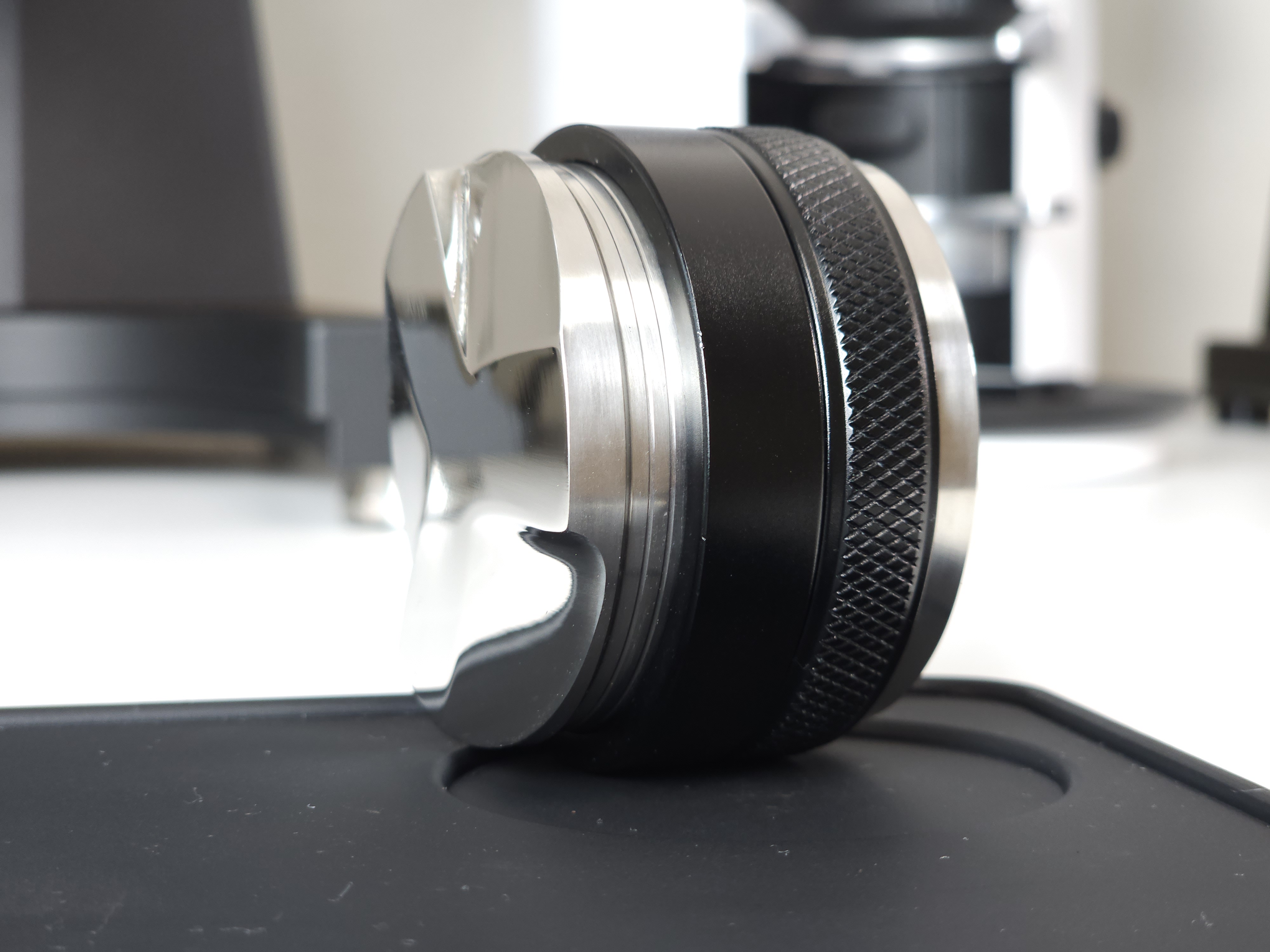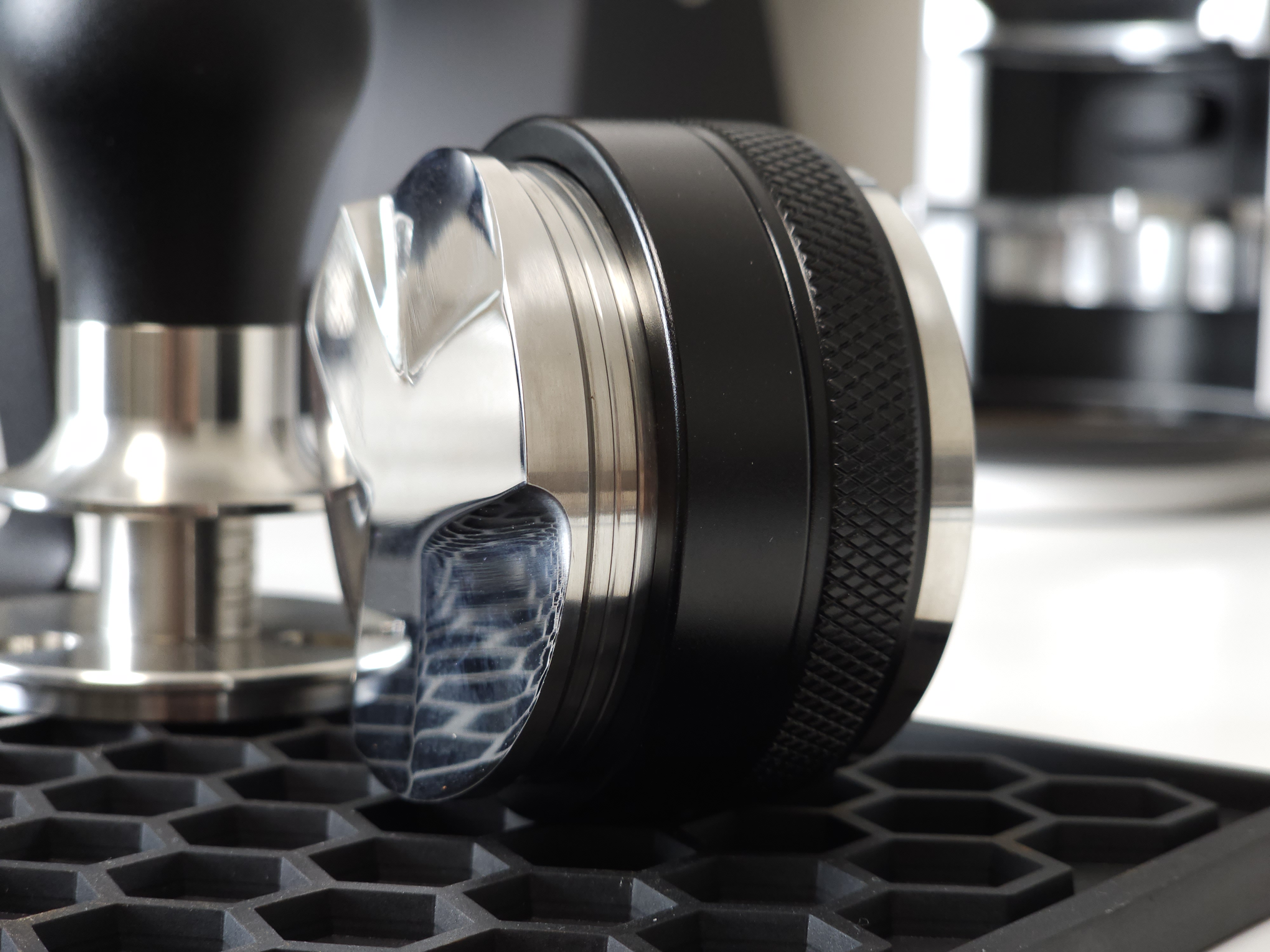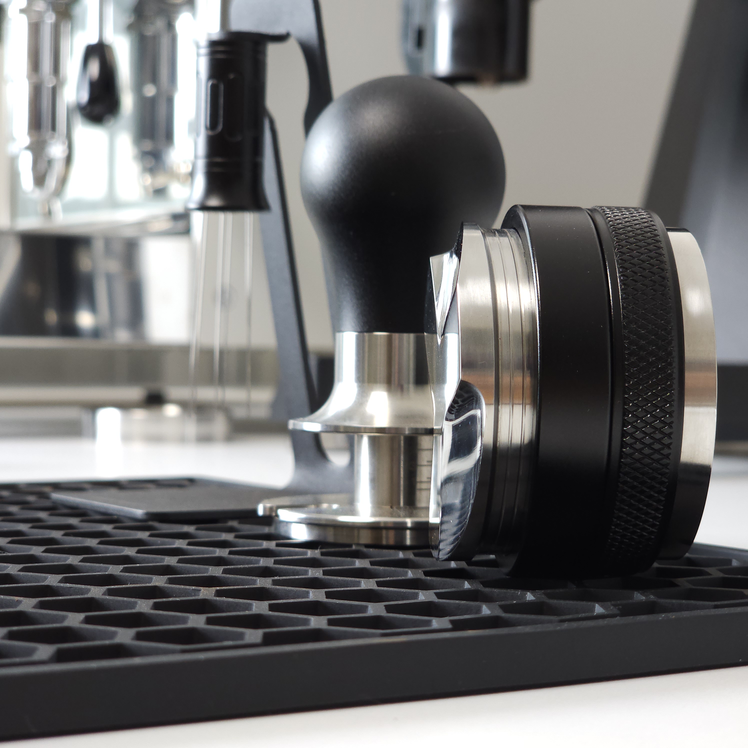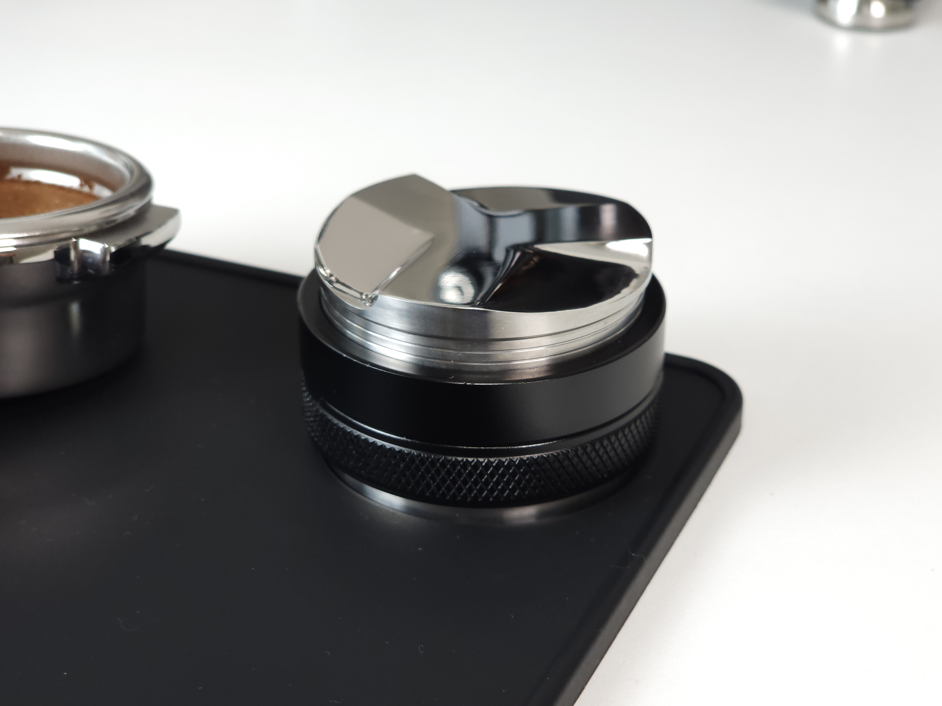 탬퍼 타입의 경우 Flat 베이스로 제작되어 일자로 탬핑이 가능합니다. 레벨링툴 더블의 검은색 테두리가 바스켓 엣지부분에 닿게 되어 항상 수평적인 탬핑이 가능합니다. 단, 템퍼 파츠의 길이를 조금 길게 빼셔야 합니다:)