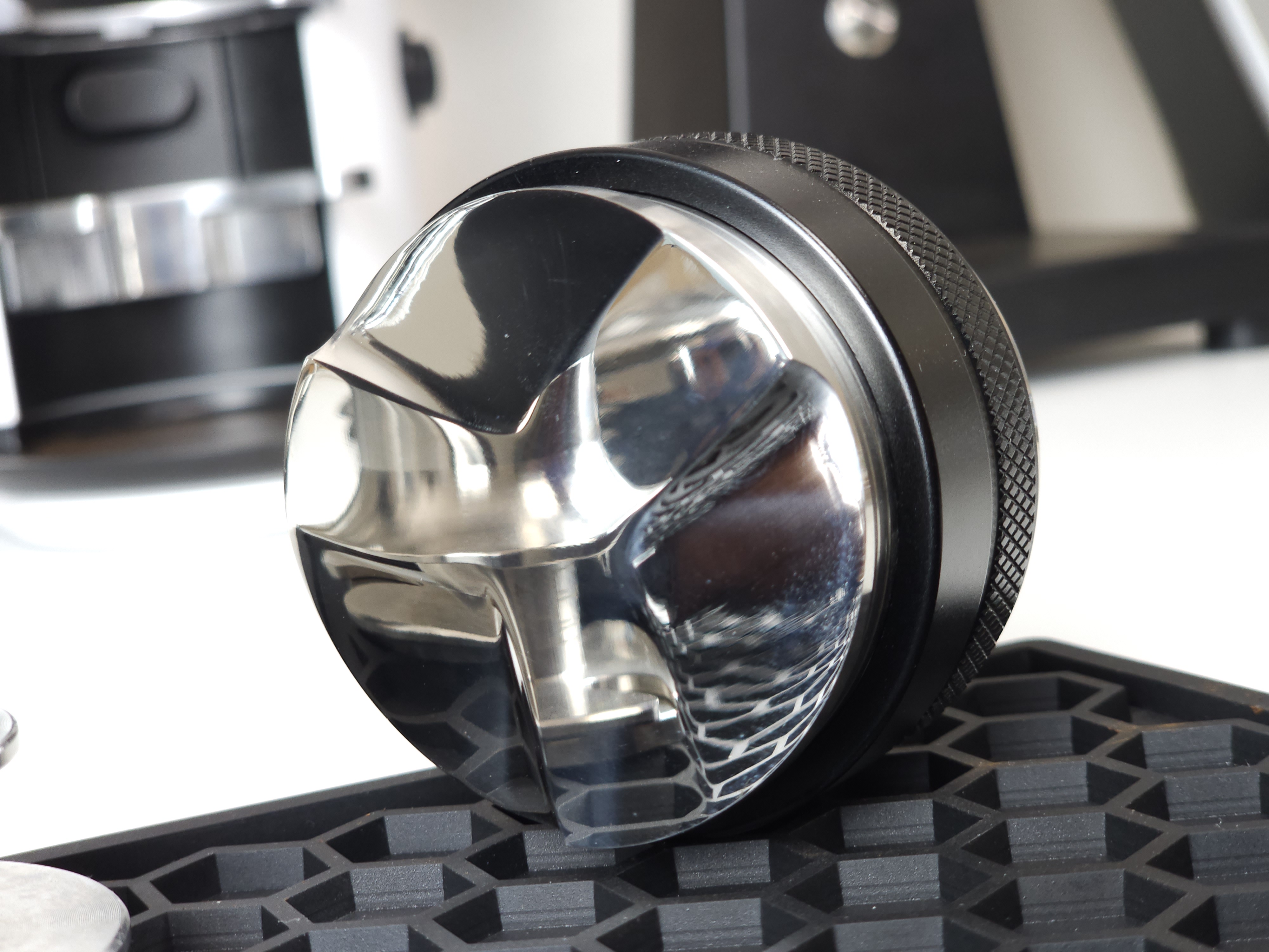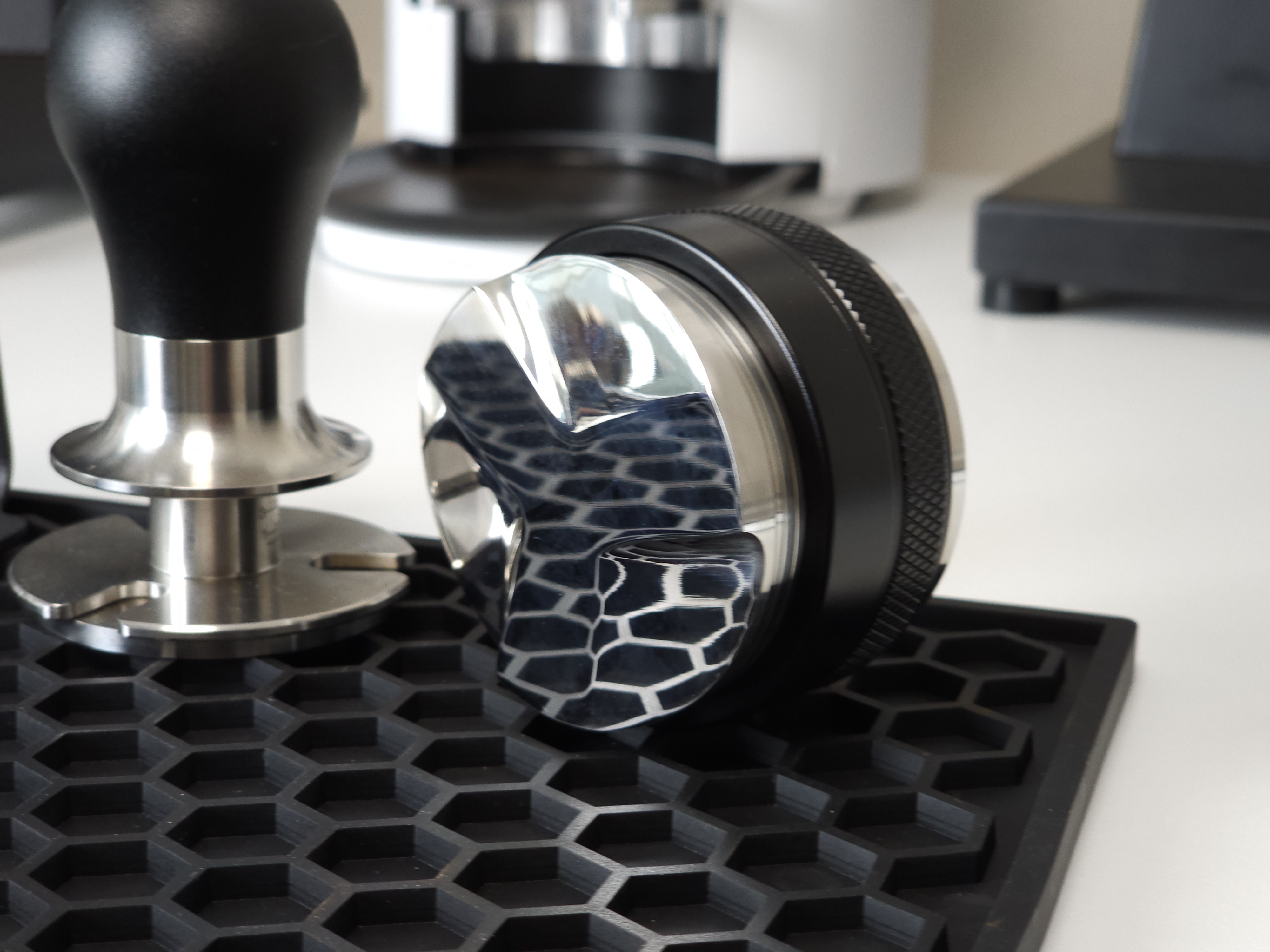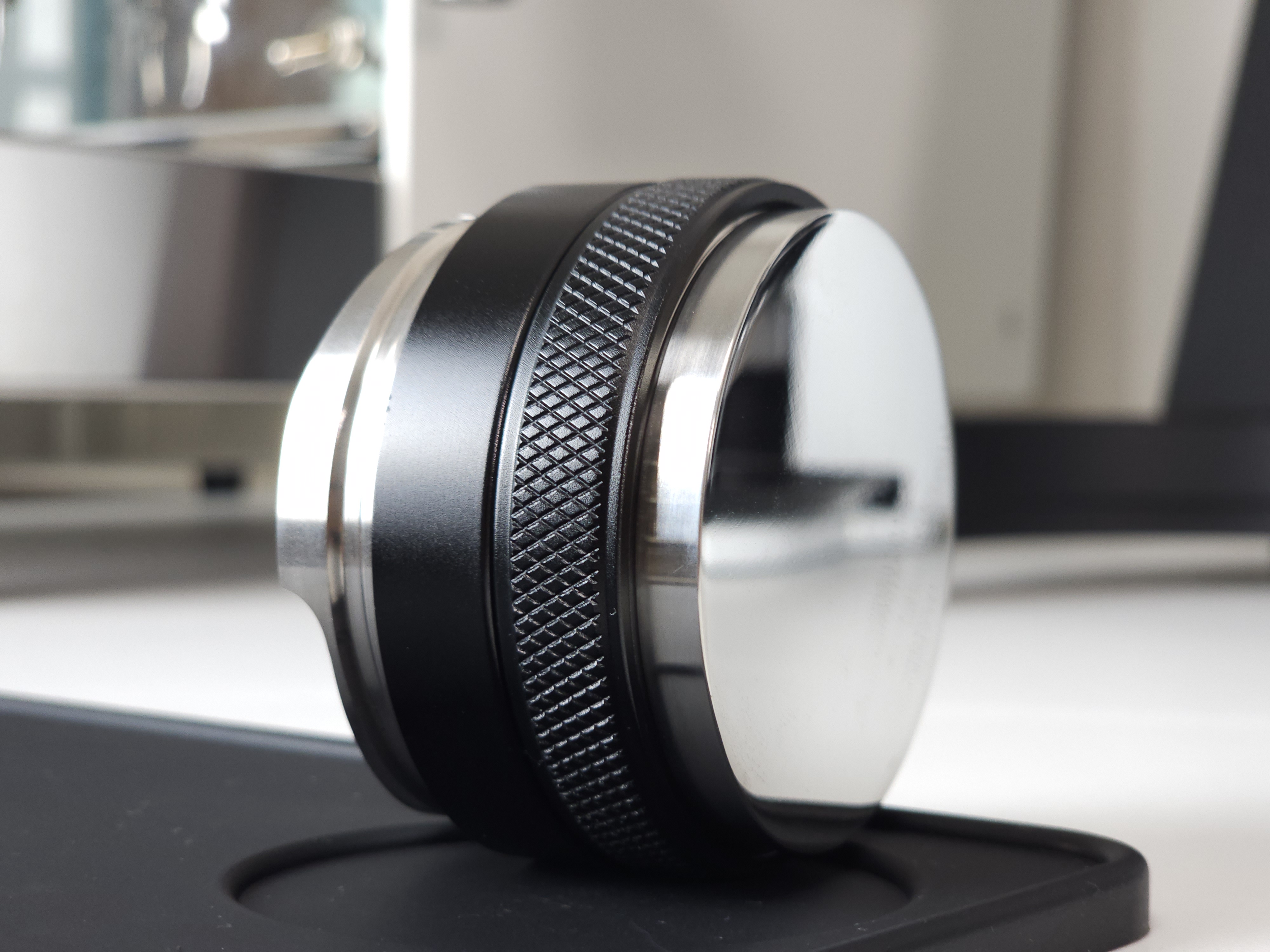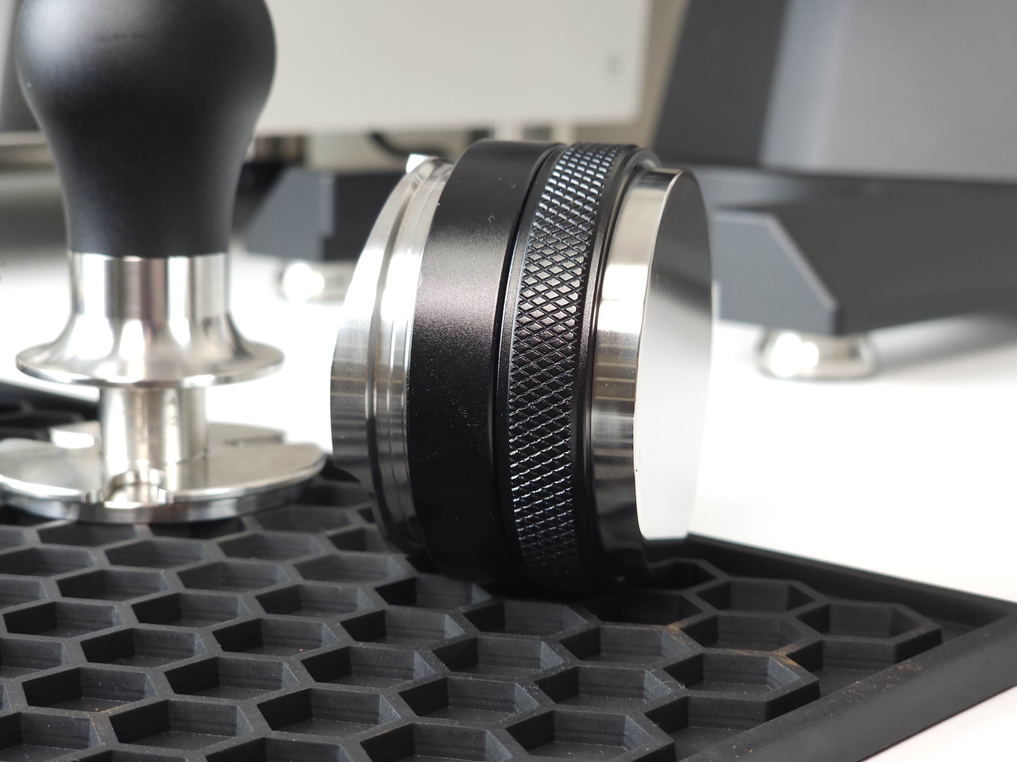 탬퍼 타입의 경우 Flat 베이스로 제작되어 일자로 탬핑이 가능합니다. 레벨링툴 더블의 검은색 테두리가 바스켓 엣지부분에 닿게 되어 항상 수평적인 탬핑이 가능합니다. 단, 템퍼 파츠의 길이를 조금 길게 빼셔야 합니다:)