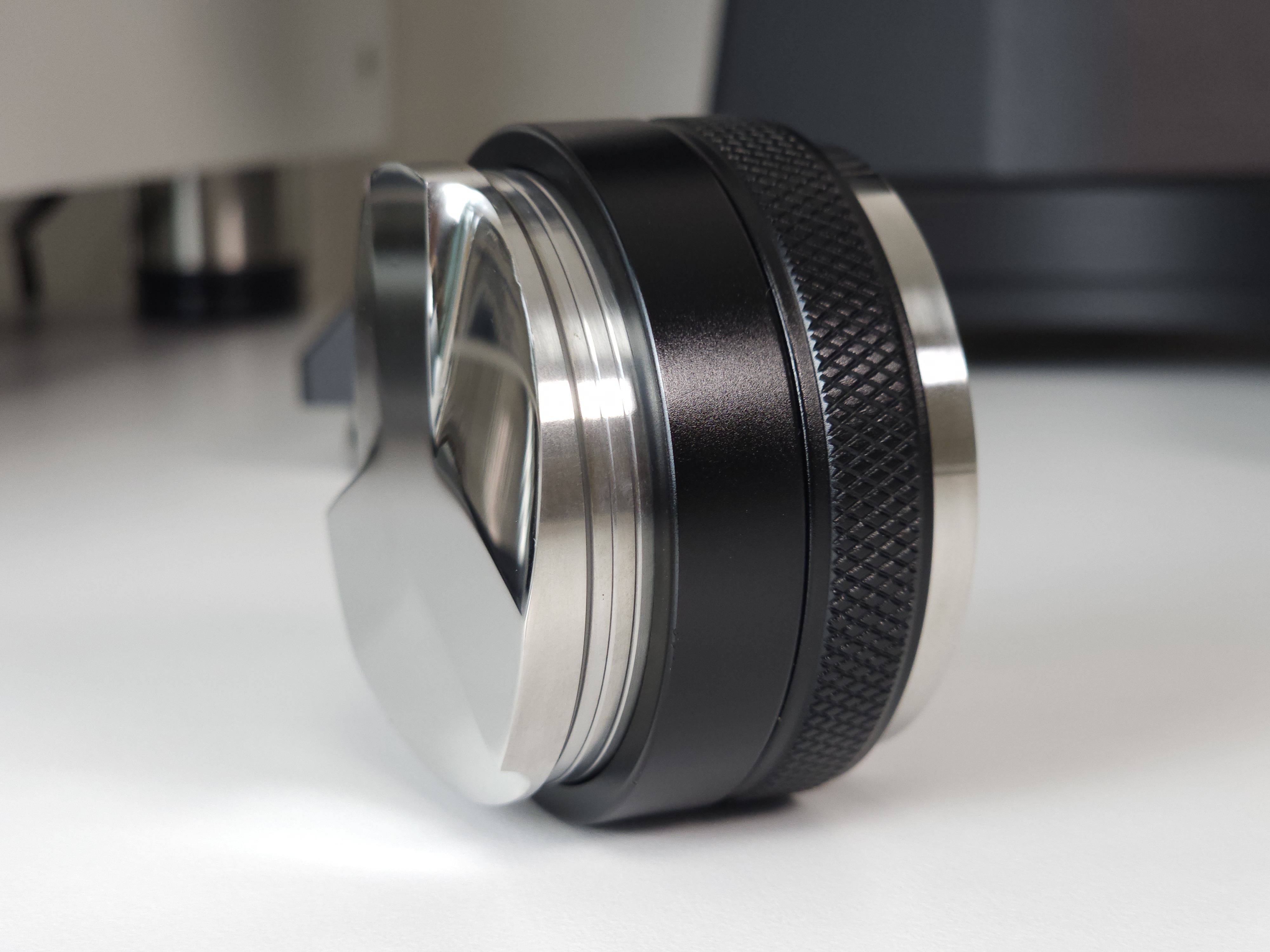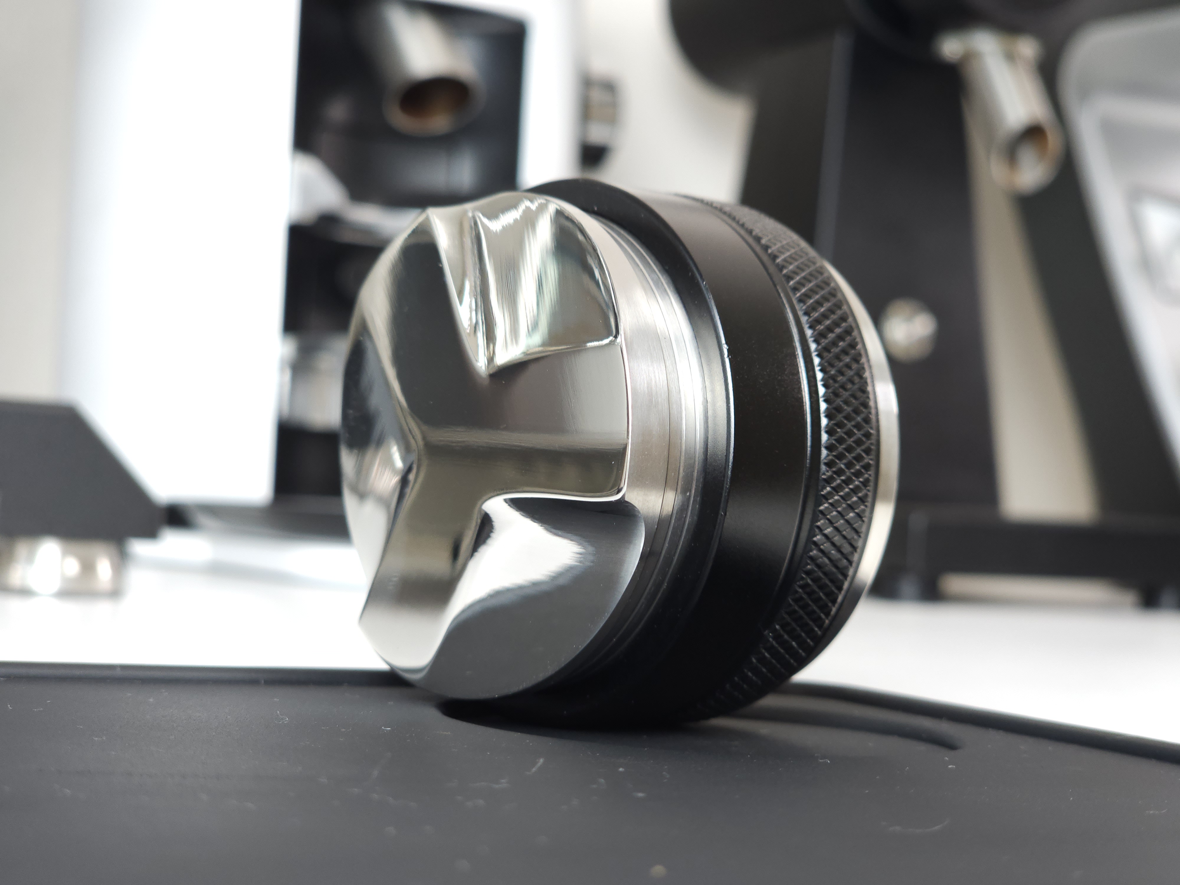 레벨링툴 파츠의 길이가 높게 된다면 템퍼 파츠의 길이가 짧게 형성되어 탬퍼 기능을 온전히 사용할 수 없을 뿐 아니라 레벨링툴의 길이가 길면 레벨링툴을 할 때 힘이 들어가 커피가 다져지는 강도가 높아져 쓴맛이 강조되고 추출 속도가 느려질 수 있습니다.