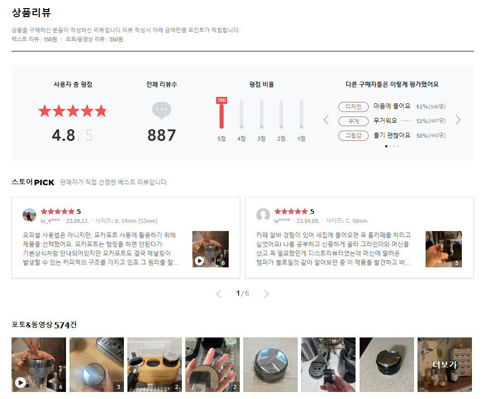 887개의 리뷰에 평점 4.8의 높은 점수를 받은 제품입니다:) 여러 고객님들의 니즈에 맞는 제품으로 항상 좋은 품질의 제품을 제공해 드리고자 노력하고 있습니다. 항상 노력하는 빈플랜트가 되도록 노력하겠습니다.