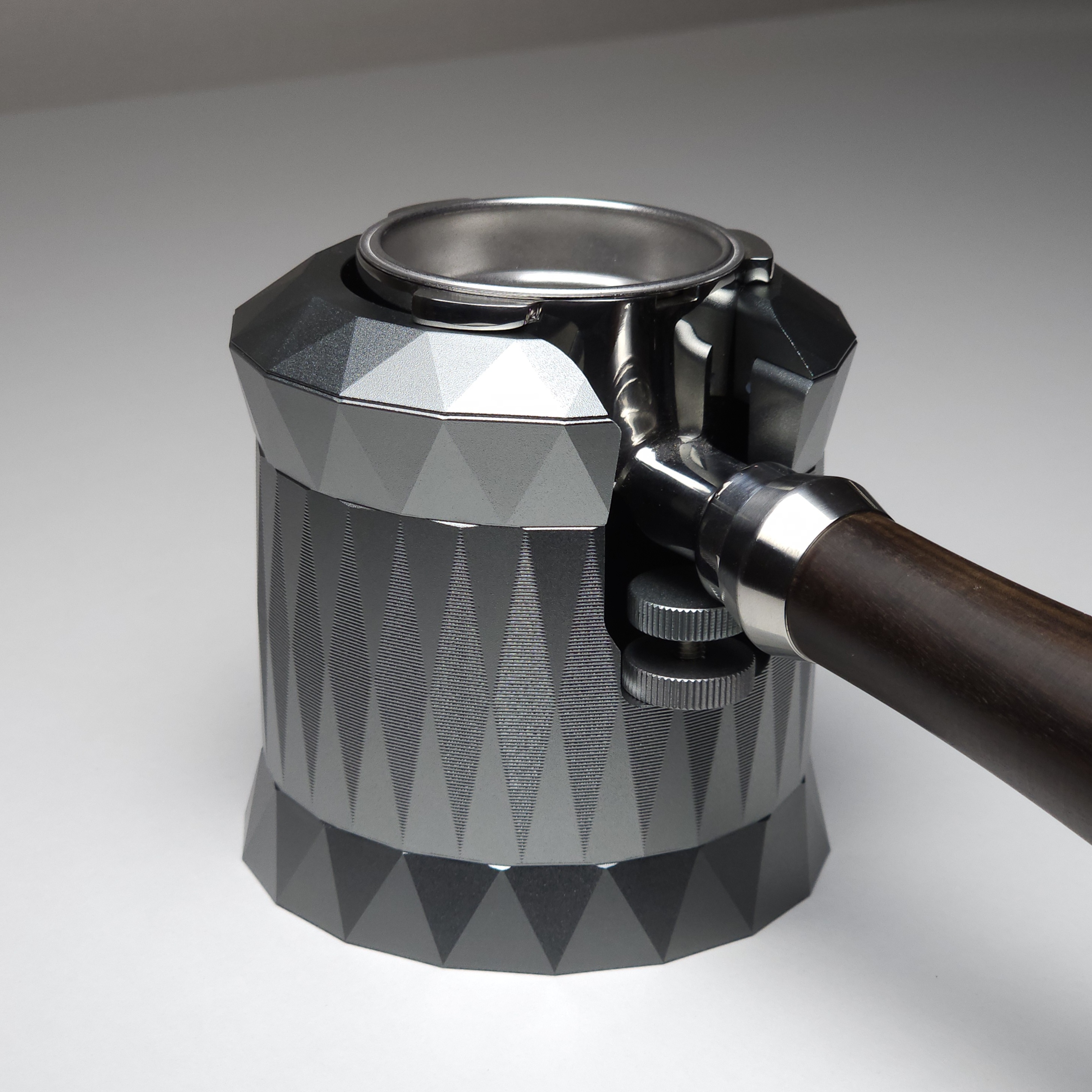 포터필터 거치대 프로는 고급 알루미늄 소재와 세련된 그레이 컬러 디자인으로 제작되어, 안정적인 탬핑을 위한 완벽한 탬핑스테이션의 공간을 제공합니다⚡
